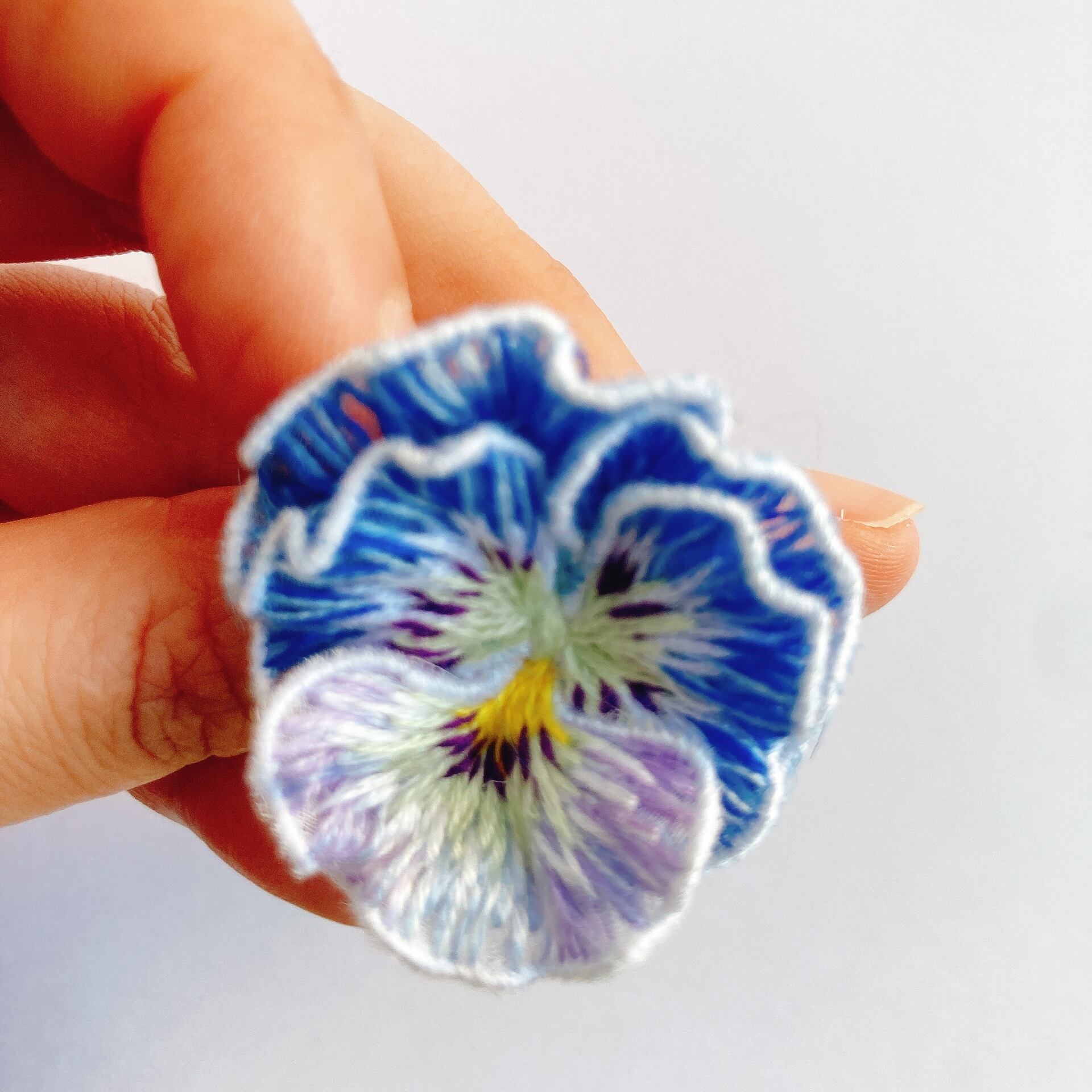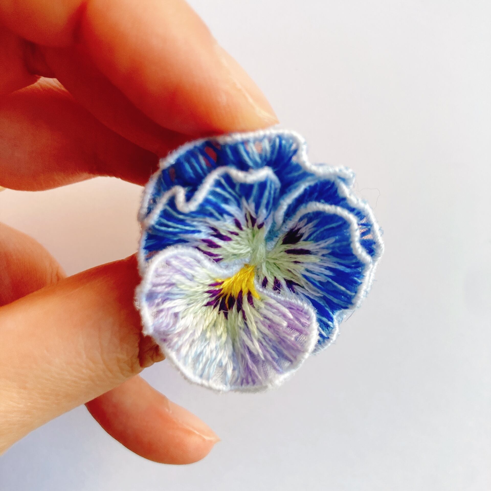 フリルパンジーの立体刺繍ブローチ/ピアス/イアリングです。金具をお選びいただけます。