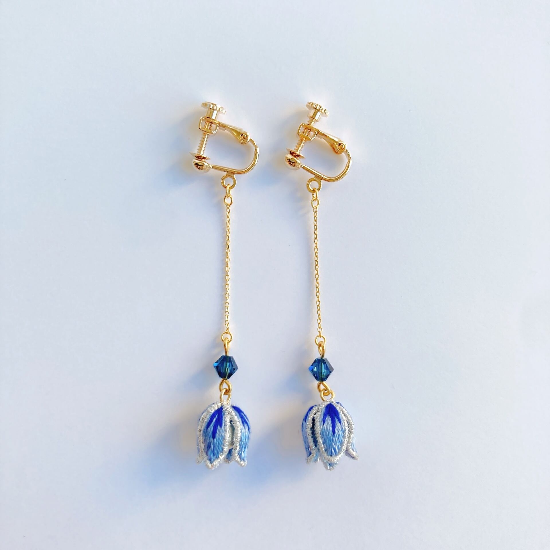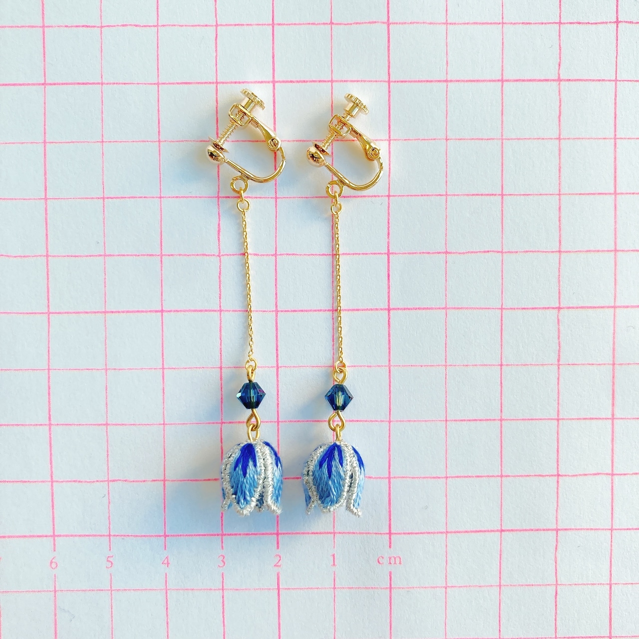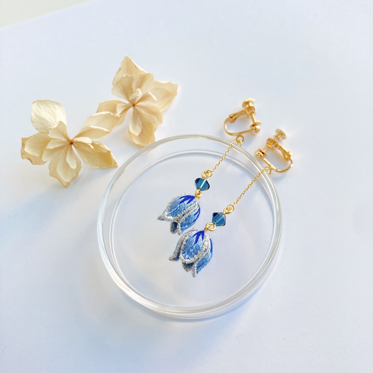 糸を使用したアクセサリーです。ご使用状況や経年で糸の毛羽立ちが出る場合や、ほつれてくる場合があります。ワイヤーを使用した作品は加圧で変形します。水濡れ、摩擦、衝撃などで破損する恐れがあります。長くお使いいただくために、強く引っ張ったり、尖ったものに引っ掛けないようご注意ください。手作りのため、小さなほつれ、ヨレなどは風合いとしてご理解いただけますと幸いです。