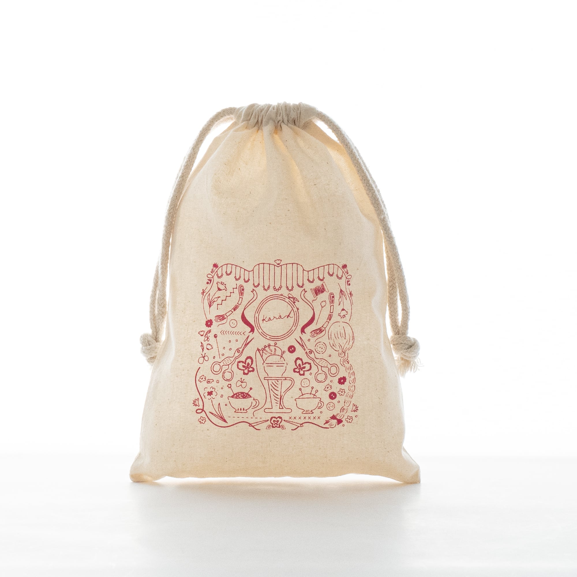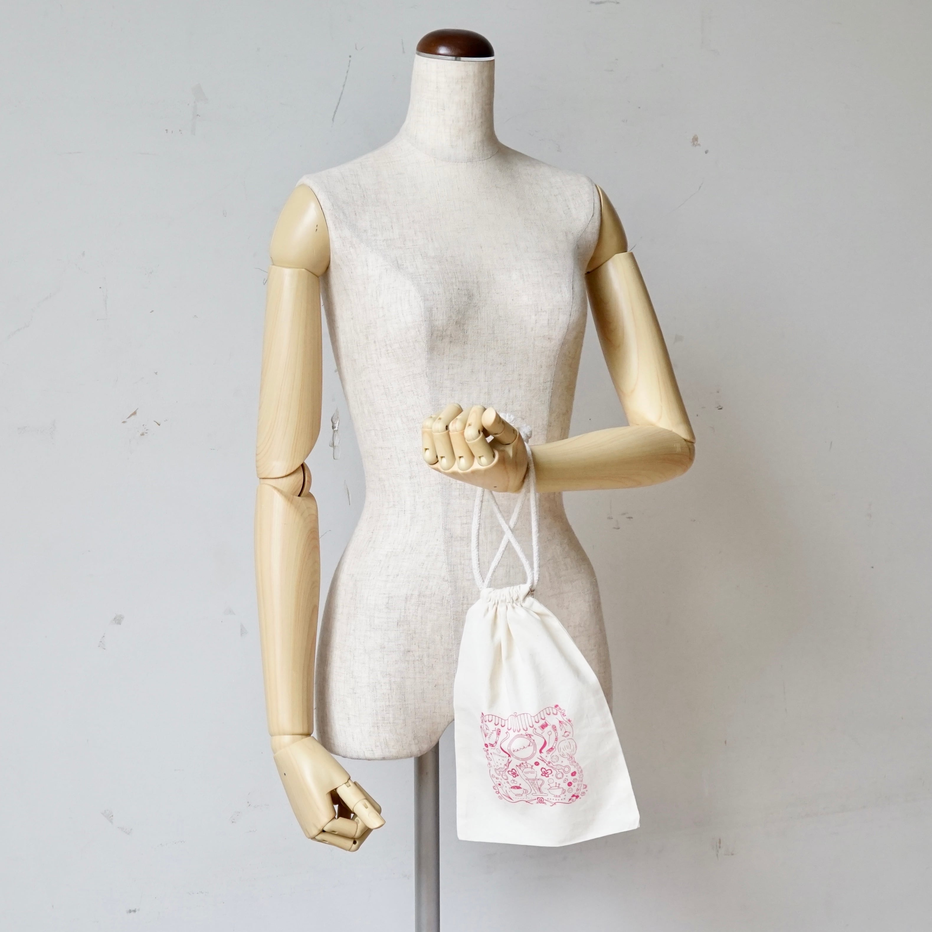 オリジナルのモチーフをたくさん詰め込め込んだオリジナルデザインのきんちゃくです。
