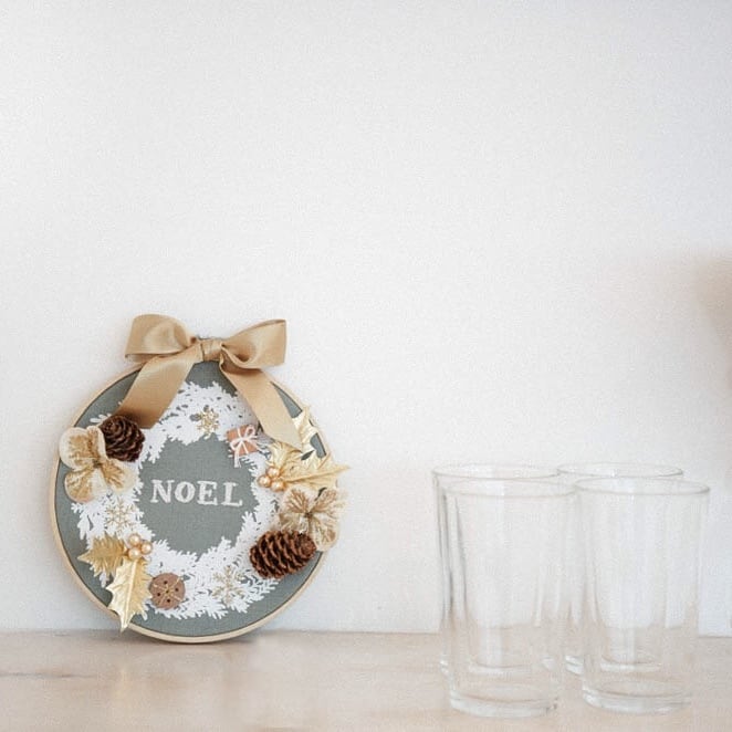 壁にかけたり、置いたりして飾り、シーズンが終わったら刺繍枠から外してしまえば、刺繍枠を再利用できます。
