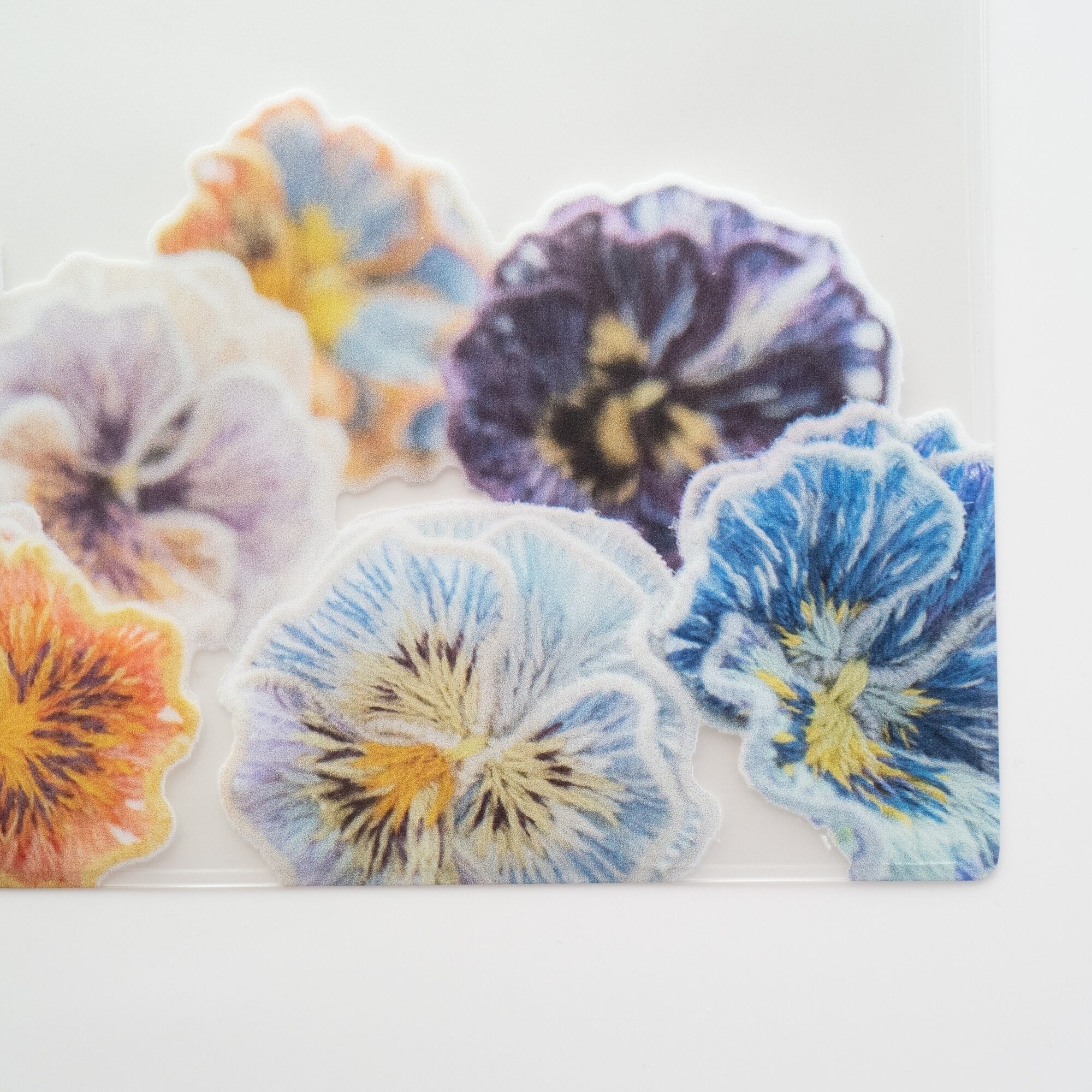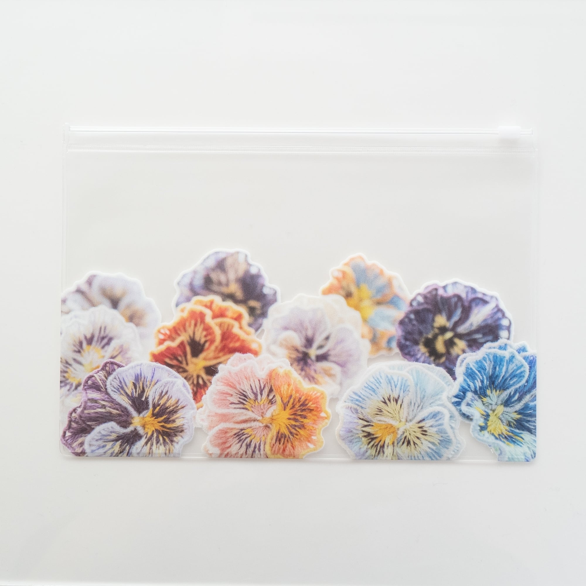 人気の手刺繍フリルパンジーの作品デザインで使いやすいクリアポーチを作りました。