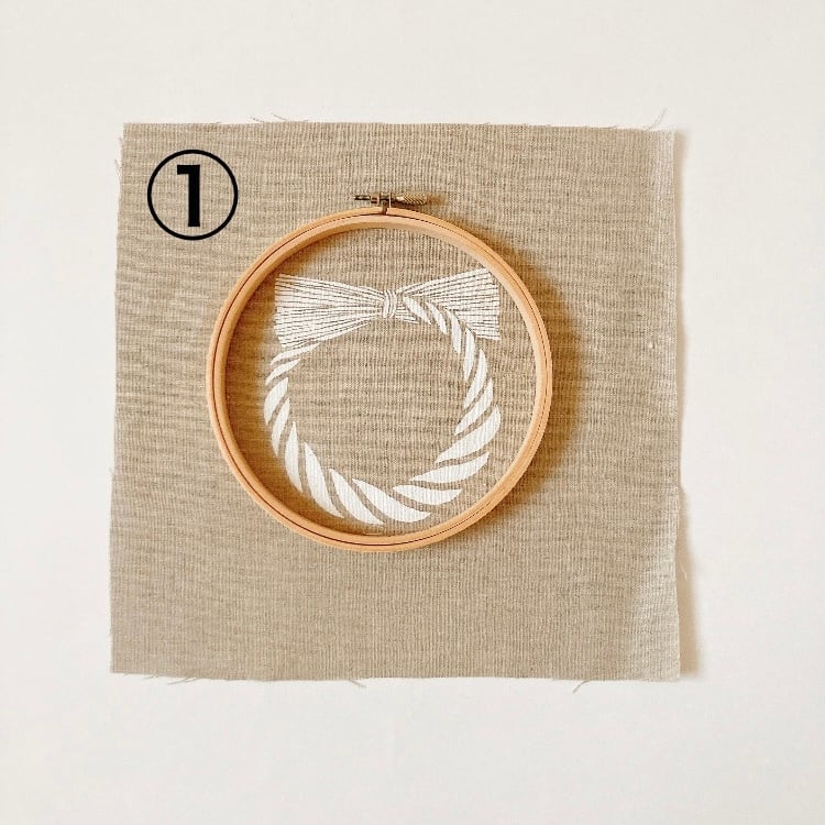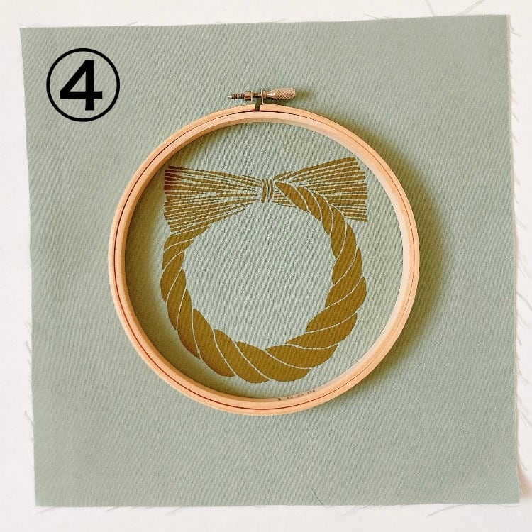 15cmの刺繍枠にぴったりのしめ縄リースの生地です。