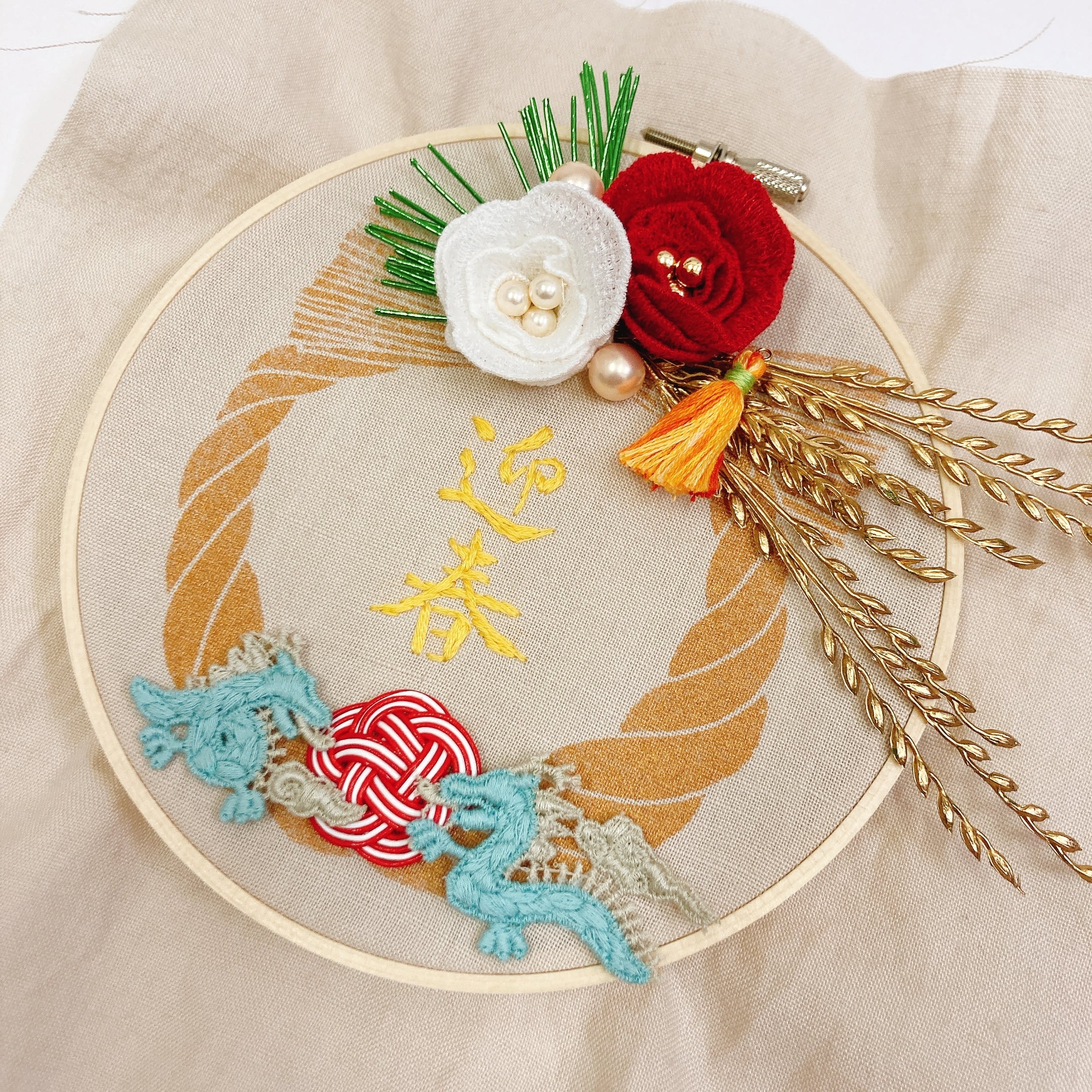 迎春やhappynewyearなど、お正月らしい刺繍をしたり